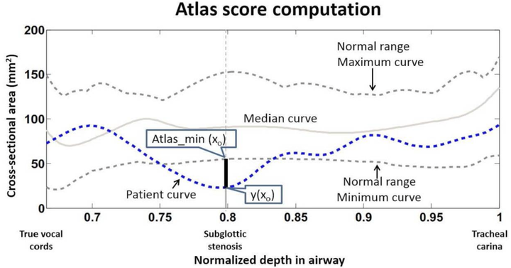 The project aims to provide an analytical for measuring the normality of children’s airways. We build an age-based atlas on multiple CT images of normal subjects. First, we use a segmentation model to extract the airway. Then, the cross-sectional areas over the airway’s length are computed, and we use them as the main feature for the analysis. Having normal subjects, we can construct the weighted percentiles of cross-sectional areas, and the extreme percentiles (5%, 95%) can serve as proper anomaly detection boundaries.